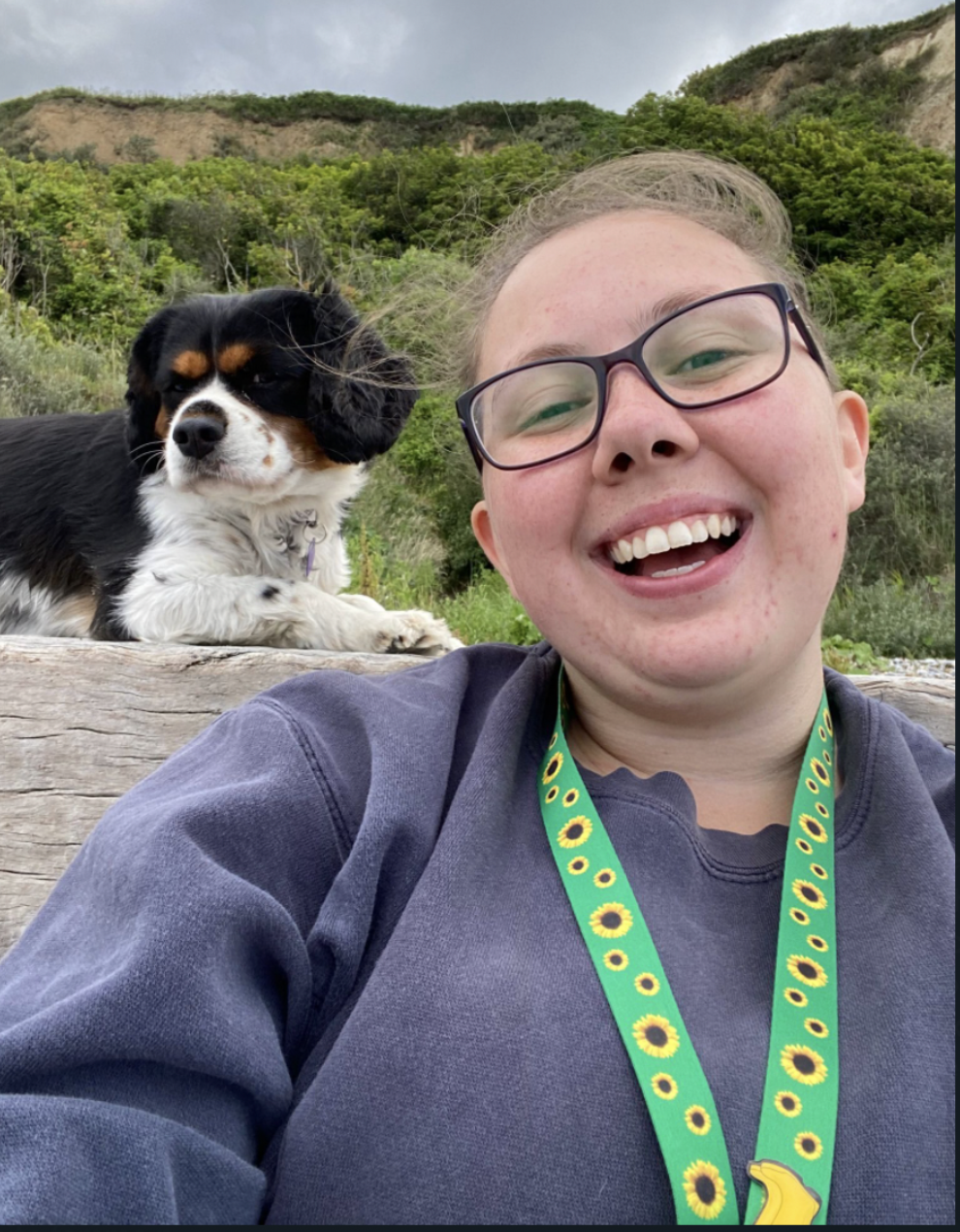 I’m Claire [they/them], a finalist Engling and your DSO. Pictured is Tilly, my assistance dog, who will also be around to help. I’m hoping to improve general awareness in the college staff around accessibility as well as running support groups and socials, and doing some boggy behind the scenes stuff. Honestly the most fun thing about me is Tilly. In my free time I read German literature (yup, I’m that boring) and watch women’s football… but Tilly’s pretty cool! She likes long walks, naps and snacks — nothing if not a relatable